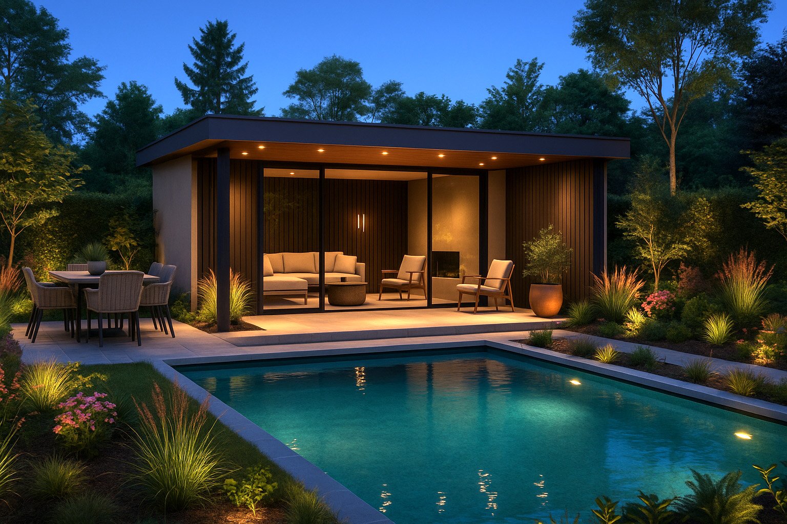 Door slim gebruik van glaspartijen ontstaat een lichte en open uitstraling, terwijl verlichting en afwerking zorgen voor comfort in elk seizoen. Zo vormt een buitenverblijf een waardevolle uitbreiding van uw woning, waarin gevoel en functionaliteit samenkomen.